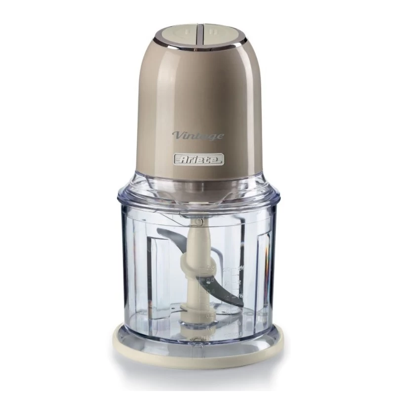 La Linea Vintage di Ariete si arricchisce di un prodotto indispensabile per le tue ricette in cucina: un tritatutto dalle linee retrò e dai tenui colori pastello, perfetto per portare un tocco di stile e funzionalità nella tua cucina. Grazie alla sua potenza di 400 Watt e alle 4 lame in Acciaio Inox, il Tritatutto Vintage ti consente di tritare qualsiasi ingrediente per le tue ricette: dalle verdure alla carne, formaggio, pane, frutta secca e perfino al ghiaccio. Le 2 velocità, azionabili con i due pulsanti posti sulla sommità del Tritatutto, ti permettono di sminuzzare o tritare finemente gli alimenti, mentre I piedini antiscivolo ti assicurano la massima adesione del prodotto al piano di lavoro.