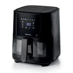 Ariete 4626 Airy Fryer 6L, Friggitrice ad aria, 1300 W, Capacità 6L, Capacità di cottura 2,5kg, 8 programmi preimpostati, Temperatura fino a 200°, Cestello trasparente per controllo cottura, Nero mod.4626/00. Tipo di prodotto: Friggitrice ad aria calda, Capacità: 6 L, Capacità friggitrice: 2,5 kg. Tipo di costruzione: Singolo, Colore del prodotto: Nero, Tipo di controllo: Touch. Tipo di display: LED. Potenza: 1300 W. Larghezza: 230 mm, Profondità: 350 mm, Altezza: 330 mm