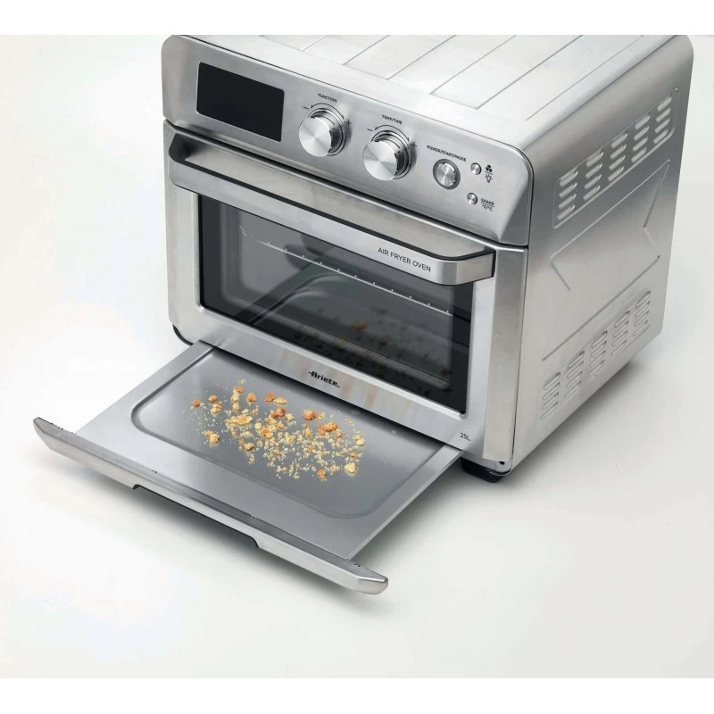Ariete 4629 Airy Fryer 25L, Friggitrice ad aria e Forno, 1700 W, Capacità 25L, 15 funzioni di cottura, Multifunzione, Temperatura fino a 230°, Silver- mod. 4629/11. Capacità netta del forno: 25 L, Colore del prodotto: Acciaio inossidabile, Posizionamento dell’apparecchio: Libera installazione. Potenza del forno: 1700 W. Larghezza: 430 mm, Profondità: 405 mm, Altezza: 395 mm
