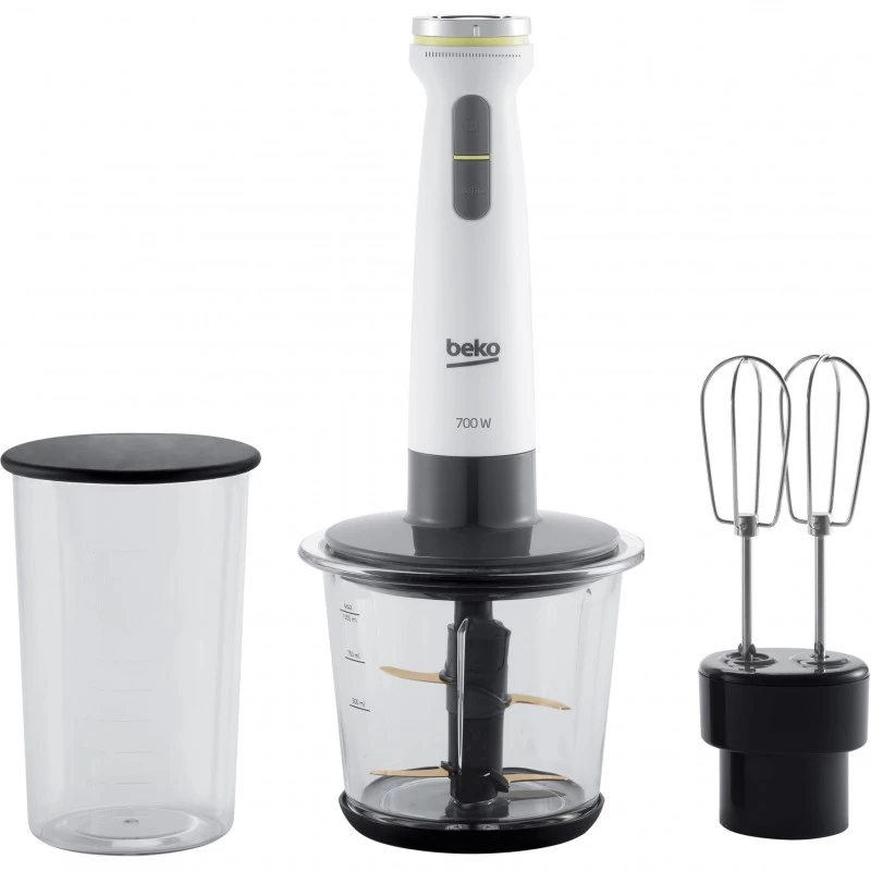 Beko HBA7608W. Capacità ciotola: 1 L, Tipo di controllo: Pulsanti. Tipo: Frullatore ad immersione, Colore del prodotto: Bianco. Materiale della ciotola di miscelazione: Vetro, Materiale della scocca: Plastica, Materiale lama: Stainless steel. Potenza: 700 W, Alimentazione: AC, Tensione di ingresso AC: 220 – 240 V. Larghezza: 76 mm, Profondità: 76 mm, Altezza: 422 mm