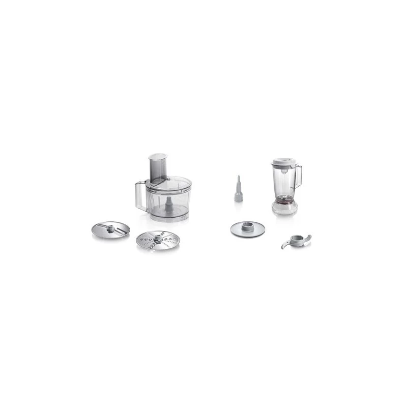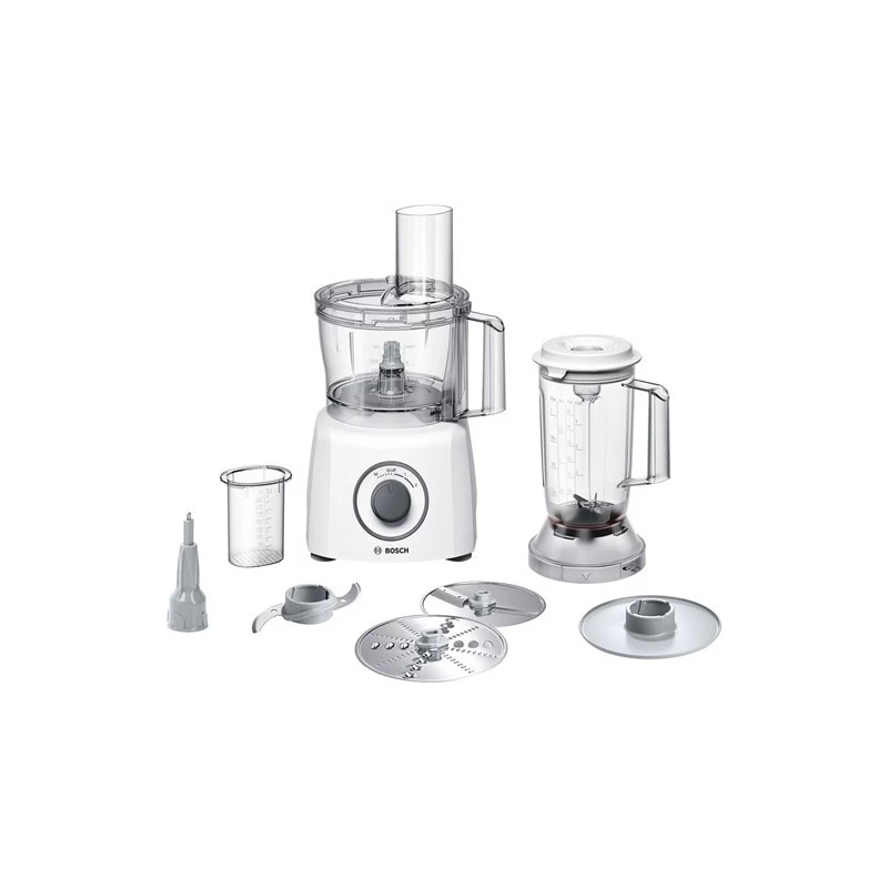 Bosch MCM3200W. Capacità ciotola: 2,3 L, Colore del prodotto: Bianco, Tipo di controllo: Manopola. Materiale ciotola: Plastica, Materiale coltelli: Acciaio inossidabile. Potenza: 800 W. Vaschetta inclusa: Sminuzzatore, Miscelatura