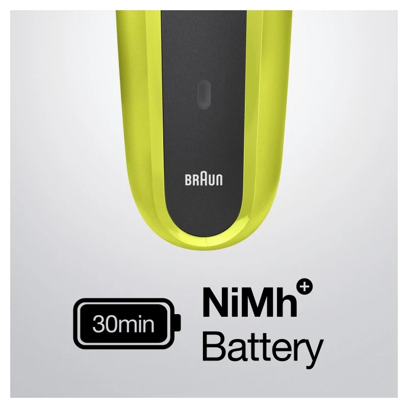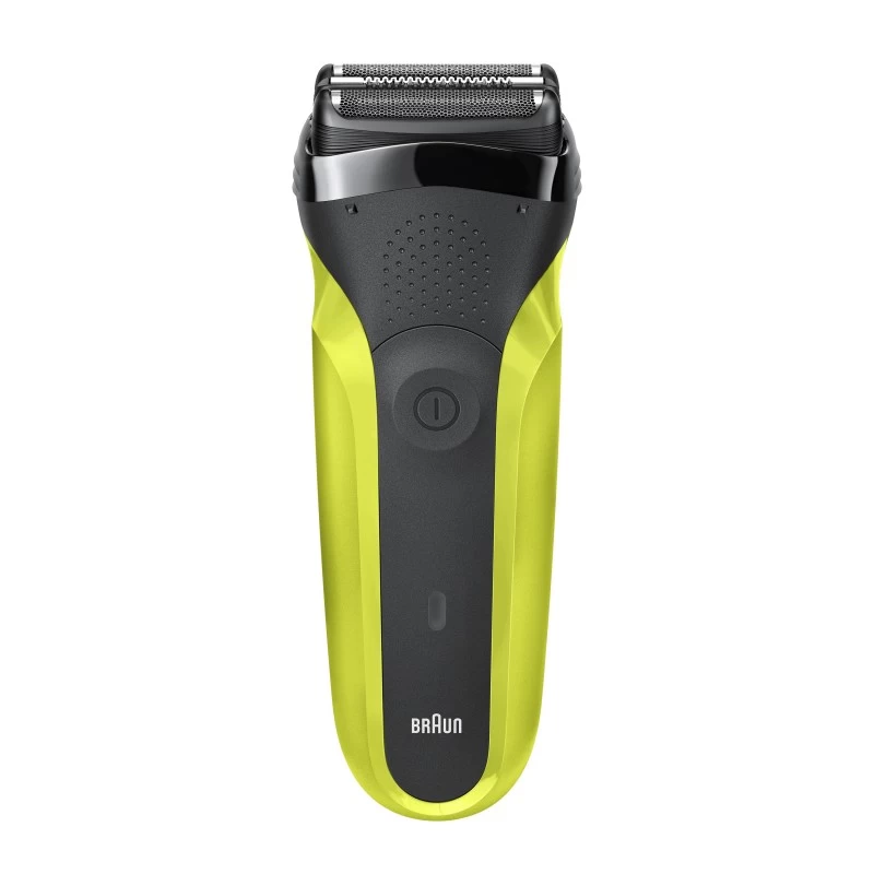 Braun Series 3 300 Rasoio Elettrico Barba, Nero/Verde Elettrico. Sistema di rasatura: Rasoio, Tipo di controllo: Pulsanti. Colore del prodotto: Nero, Verde, Tipo di display: LED, Indicatori LED: Carica, Potenza. Alimentazione: CA/Batteria, Tecnologia batteria: Nichel-Metallo Idruro (NiMH), Tipo batteria: Batteria integrata. Peso: 326 g, Peso della batteria: 22 g. Tipo di imballo: Scatola, Larghezza imballo: 56 mm, Profondità imballo: 111 mm