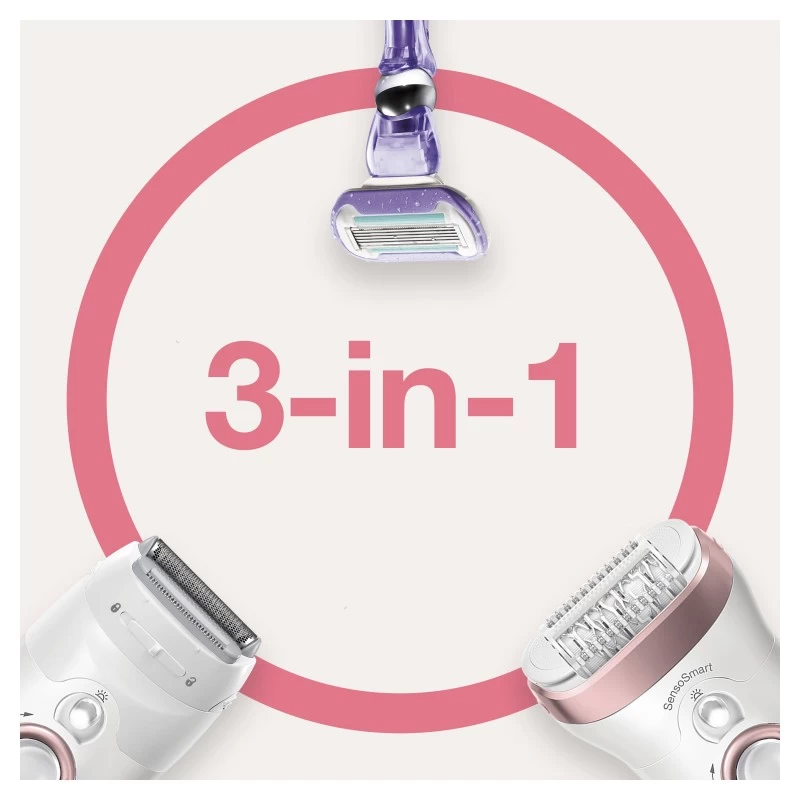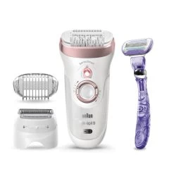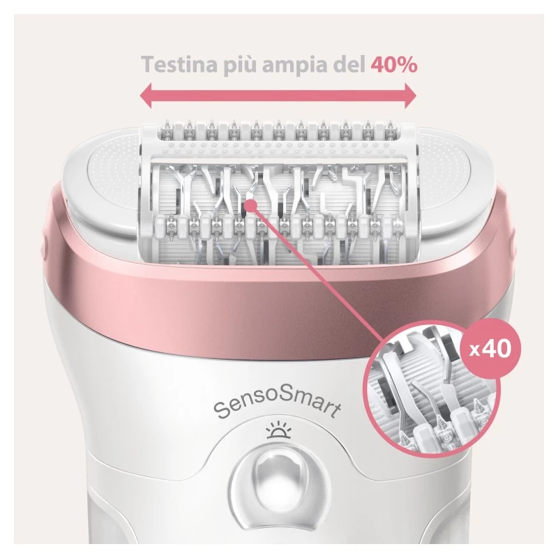 Braun Silk-épil 9 9-870, Epilatore Donna Bianco/Oro Rosa Per Una Rimozione Duratura Dei Peli. Colore del prodotto: Rosa, Bianco, Numero di pinzette: 40 pinzette. Alimentazione: Batteria, Tipo batteria: Batteria integrata, Tecnologia batteria: Ioni di Litio