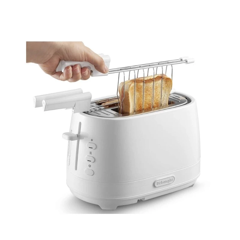 De’Longhi CTLAP2203.W. Numero di fette: 2 fetta/e, Colore del prodotto: Bianco, Tipo di controllo: Pulsanti, Livello. Potenza: 550 W. Larghezza: 180 mm, Profondità: 300 mm, Altezza: 183 mm