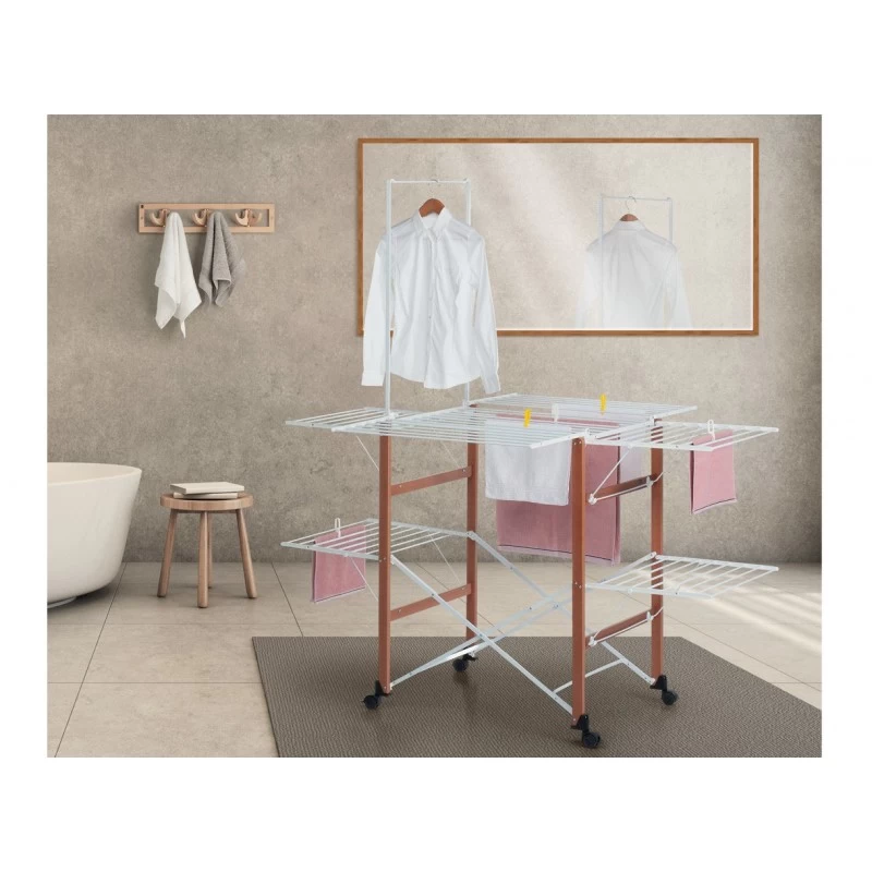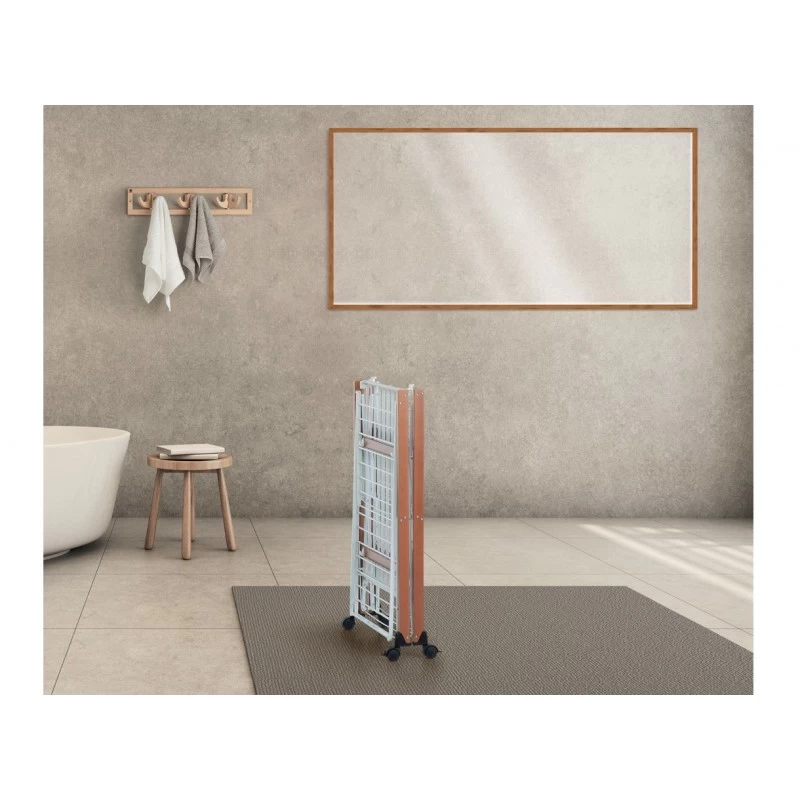 È molto stabile grazie alla struttura in legno massiccio con bacchette in alluminio verniciato, ma anche davvero facile da spostare grazie alle 4 ruote antigraffio, delle quali 2 con freno.