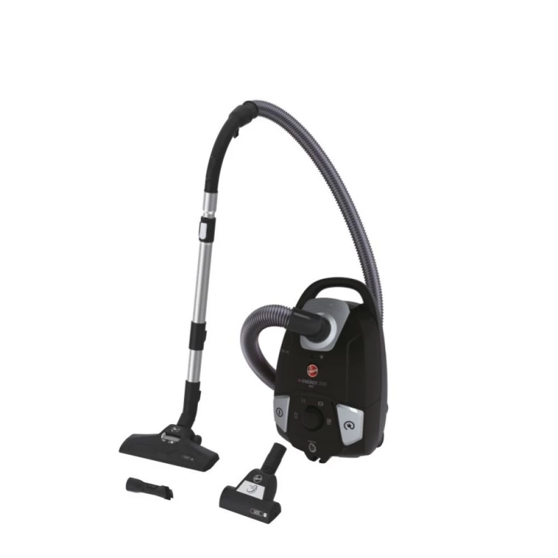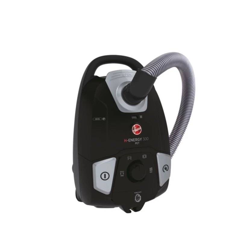Hoover H-ENERGY 300 HE320PET 011. Massima potenza in entrata: 850 W. Tipo: Aspiratore a cilindro, Tipo di pulizia: Secco, Tipo di contenitore della polvere: Sacchetto per la polvere, Capacità del contenitore: 3,5 L. Sistema di filtraggio dell’aspirapolvere: EPA, Metodo di separazione dello sporco: Filtro, Emissione acustica: 72 dB. Colore del prodotto: Nero