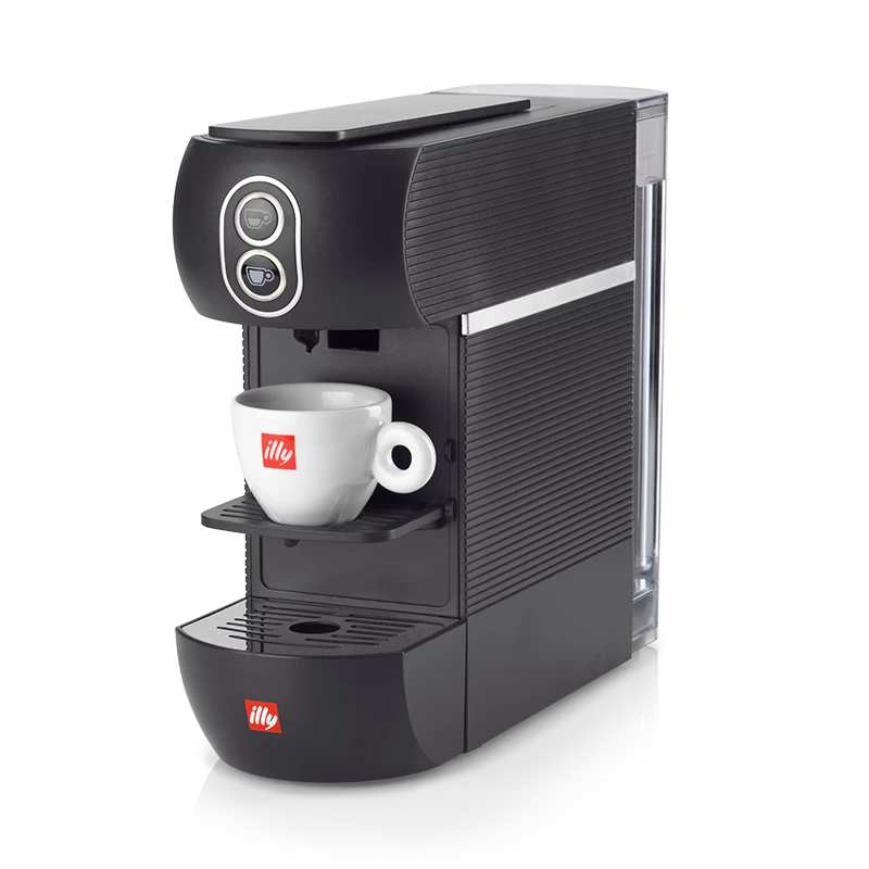 Macchina da caffè per cialde E.S.E. ottimizzata per rispondere allo standard qualitativo illy in tazza sin dal primo caffè. I due tasti erogazione permettono di scegliere tra caffè espresso e caffè lungo. L’esperienza di utilizzo risulta facile e intuitiva: la cialda viene inserita dall’alto ed espulsa all’interno del cassetto raccogli cialde. La forma compatta ne massimizza la praticità.