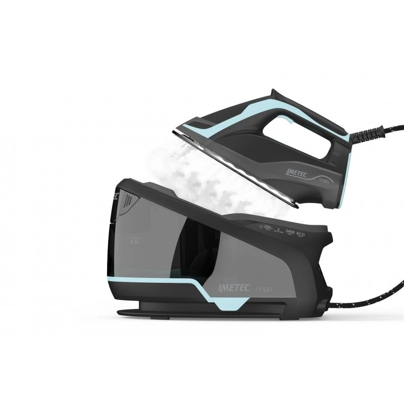 Imetec Onda sistema stirante con piastra a onde brevettata, 2400 W. Potenza ferro: 2400 W, Emissione concentrata vapore: 300 g/min, Capacità tanica acqua: 2,5 L. Tensione di ingresso AC: 220 – 240 V, Frequenza di ingresso AC: 50 Hz. Lunghezza cavo: 1,9 m. Larghezza: 340 mm, Profondità: 210 mm, Altezza: 290 mm