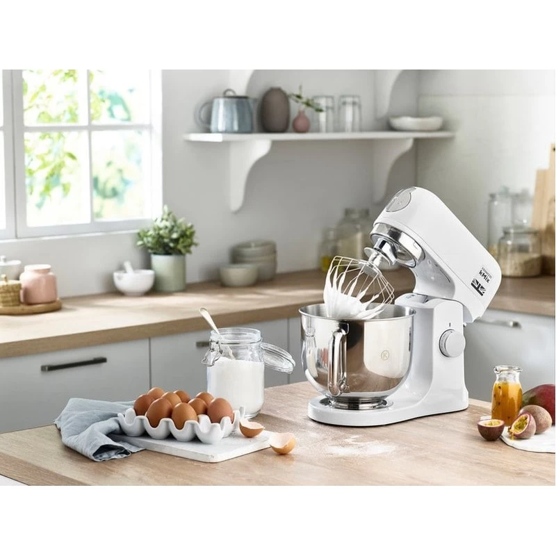 Kenwood KMX750AW. Tipo: Sbattitore con base, Colore del prodotto: Bianco, Funzioni mixer: Sbattitura. Materiale ciotola: Acciaio inossidabile. Potenza: 1000 W. Larghezza: 240 mm, Profondità: 385 mm, Altezza: 353 mm