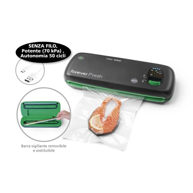 Macom VAC 4000. Colore del prodotto: Nero, Verde, Ampiezza massima di lavorazione: 28 cm. Tecnologia batteria: Litio, Tempo di funzionamento: 110 min. Certificati di sostenibilità: CE. Larghezza: 356 mm, Profondità: 141 mm, Altezza: 68 mm. Larghezza imballo: 390 mm, Profondità imballo: 105 mm, Altezza imballo: 185 mm