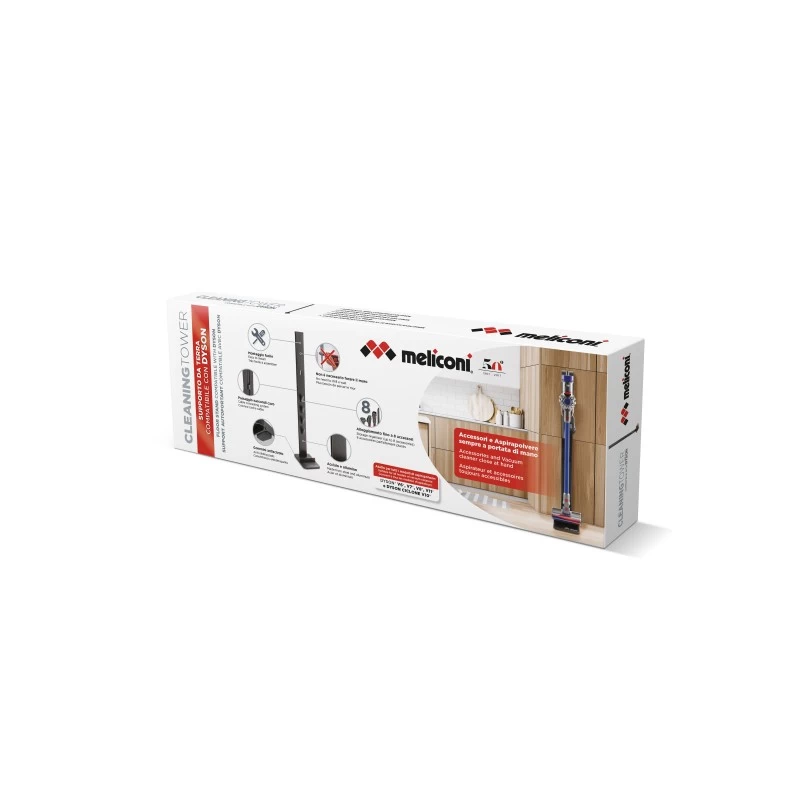 Meliconi Cleaning Tower Supporto da Terra compatibile con Dyson. Adatto per tipo di aspirapolvere: Aspirapolvere a bastone, Tipo di prodotto: Docking station, Colore del prodotto: Nero. Tipo di imballo: Scatola