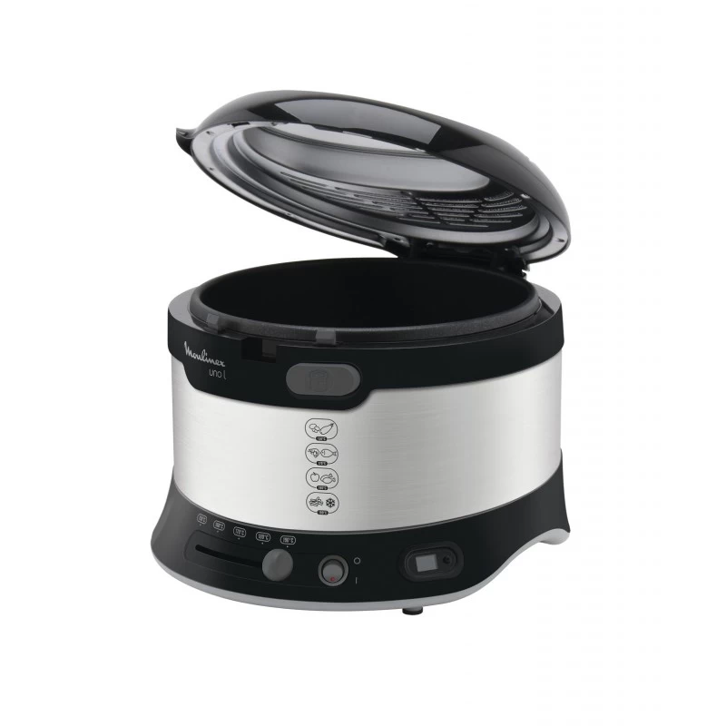 Moulinex AF179D10 Uno L Metal, 1900 W, 2.1 Litri, Acciaio Inossidabile, Nero/Grigio. Tipo di prodotto: Friggitrice, Capacità friggitrice: 1,2 kg, Capacità olio: 2,1 L. Tipo di costruzione: Singolo, Colore del prodotto: Stainless steel, Tipo di controllo: Pulsanti, Leva. Potenza: 1900 W. Peso: 2,6 kg, Larghezza imballo: 358 mm, Profondità imballo: 380 mm
