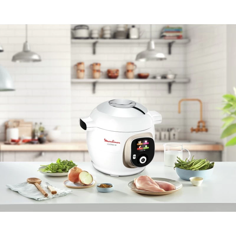 Moulinex CE851A Cookeo + Multicooker con 150 Ricette Pre-impostate, 1600 W, Capacità 6 Litri, 2-6 Persone, Robot da Cucina Multifunzione con 6 Modalità di Cottura, Cottura Automatica, Avvio Ritardato. Capacità: 6 L, Potenza: 1600 W, Numero di persone: 6 persona(e). Colore del prodotto: Argento, Bianco, Rivestimento interno: Ceramica, Tipo di display: LED. Tipo di presa: Tipo C. Larghezza: 364 mm, Profondità: 340 mm, Altezza: 320 mm. Larghezza imballo: 354 mm, Profondità imballo: 376 mm, Altezza imballo: 355 mm