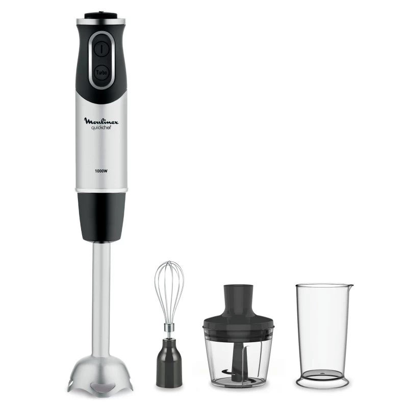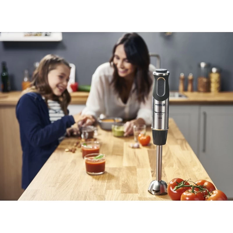 Potenza ottimale senza alcuna fatica! Con il frullatore ad immersione Quickchef di Moulinex, godi di alte prestazioni e controllo totale grazie alla Powelix Technology e alle sue lame combinate con il motore da 1000 W che amplificano la potenza raggiungendo risultati perfetti ogni volta. Questa tecnologia assicura una incredibile cremosità in poco tempo, anche con gli ingredienti più difficili! In più, le 10 velocità possono essere regolate senza arrestare la macchina mediante un quadro di comandi intuitivo e facile da usare. Il mixer beneficia anche di pratiche carattersitiche che include una protezione antischizzi, un’impugnatura antiscivolo per un maggiore comfort d’uso e le componenti lavabili in lavastoviglie per una facile pulizia. A completamento, vengono forniti un bicchiere da 800 ml, un tritatutto da 500 ml per sminuzzare facilmente vari ingredienti e una frusta per sbattere senza fatica.