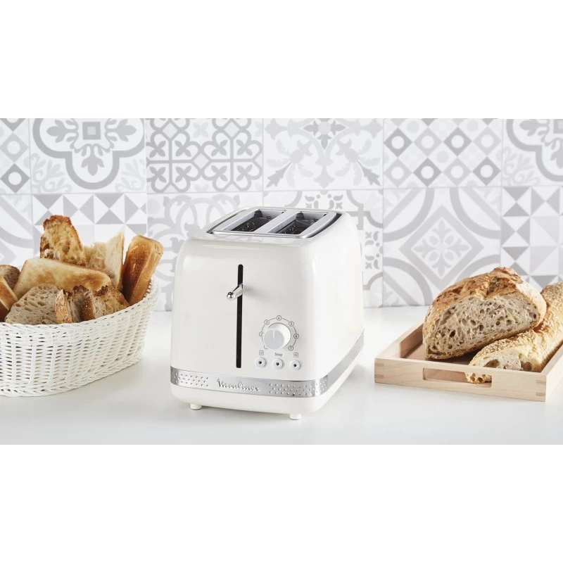 Moulinex TOSTAPANE SOLEIL. Colore del prodotto: Avorio, Paese di origine: Cina. Potenza: 850 W. Larghezza: 178 mm, Altezza: 187 mm, Peso: 1,3 kg. Larghezza imballo: 182 mm, Profondità imballo: 310 mm, Altezza imballo: 195 mm