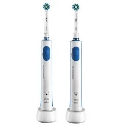 Oral-B PRO 600 Cross Action Adulto BIPACCO 2 Spazzolini – rotante-oscillante Blu, Bianco. Utilizzo: Adulto, Tipo di spazzolino da denti: Spazzolino rotante-oscillante, Modalità dello spazzolino: Cura quotidiana. Alimentazione: Batteria, Tipo batteria: Batteria integrata. Tipo di imballo: Scatola. Numero di manici inclusi: 2 pz, Numero di testine incluse: 2 pz, Testine per spazzolino incluse: Cross Action