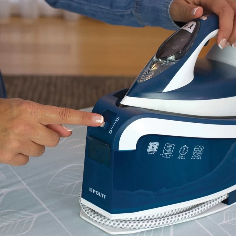 Attiva con un doppio clic sul pulsante del ferro il potente colpo di vapore da 240 g/min: in questo modo il vapore penetra a fondo nei tessuti e li distende con facilità, così potrai stirare con semplicità e rapidità anche le pieghe più resistenti e ostinate. Perfetto anche per la stiratura verticale.