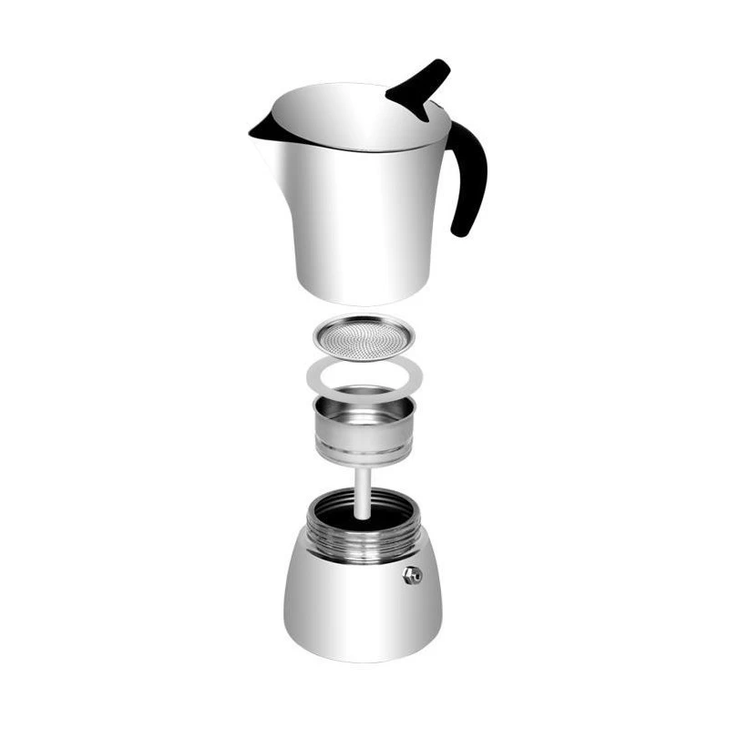 Tescoma Monte Carlo. Tipo di prodotto: Moka, Capacità: 0,14 L, Colore del prodotto: Acciaio inossidabile. Larghezza: 95 mm, Profondità: 95 mm, Altezza: 150 mm. Quantità per pacco: 1 pz