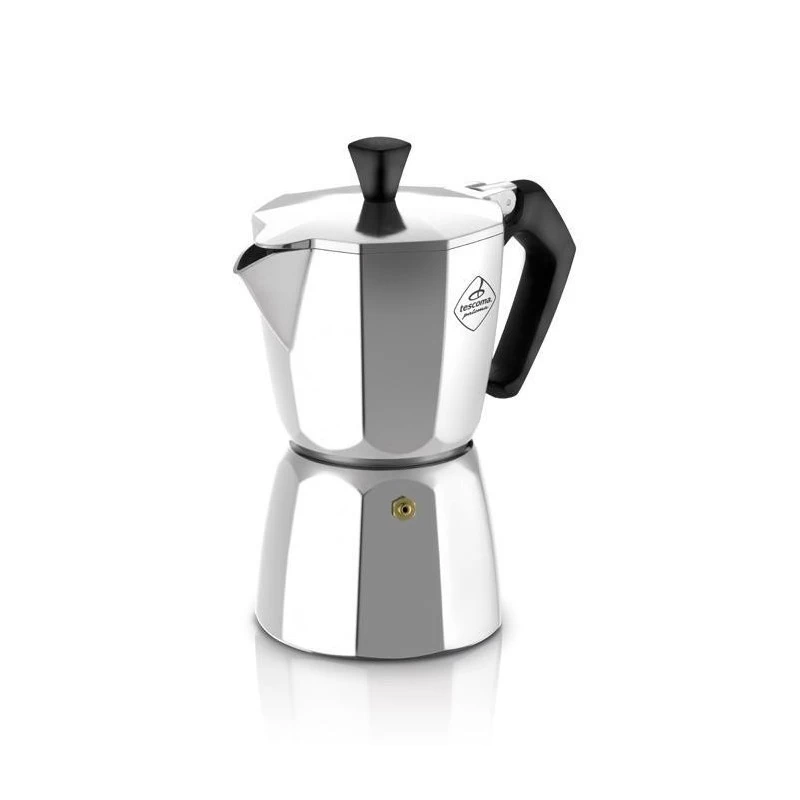 Tescoma Paloma. Tipo di prodotto: Moka, Colore del prodotto: Nero, Acciaio inossidabile, Materiale della scocca: Alluminio. Larghezza: 100 mm, Profondità: 100 mm, Altezza: 200 mm. Quantità per pacco: 1 pz