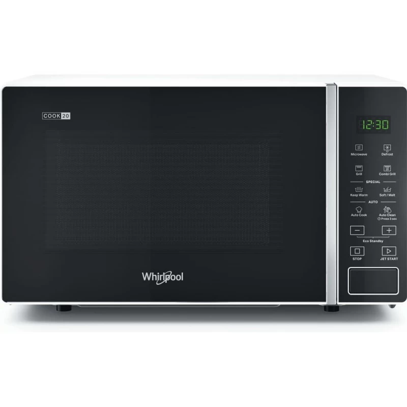 Whirlpool MWP 203 W. Posizionamento dell’apparecchio: Superficie piana, Tipo di prodotto: Microonde combinato, Capacità interna: 20 L. Tensione di ingresso AC: 230-240 V, Frequenza di ingresso AC: 50 Hz, Corrente: 6 A. Larghezza: 452 mm, Profondità: 363 mm, Altezza: 262 mm